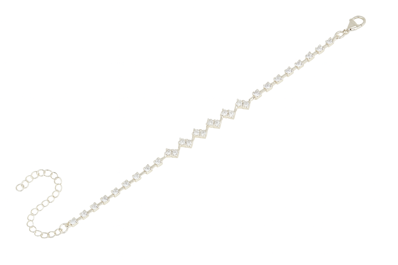 Delikatny łańcuszek ozdobiony drobnymi cyrkoniami pięknie odbija światło, tworząc efekt wyjątkowego połysku przy każdym ruchu dłoni.