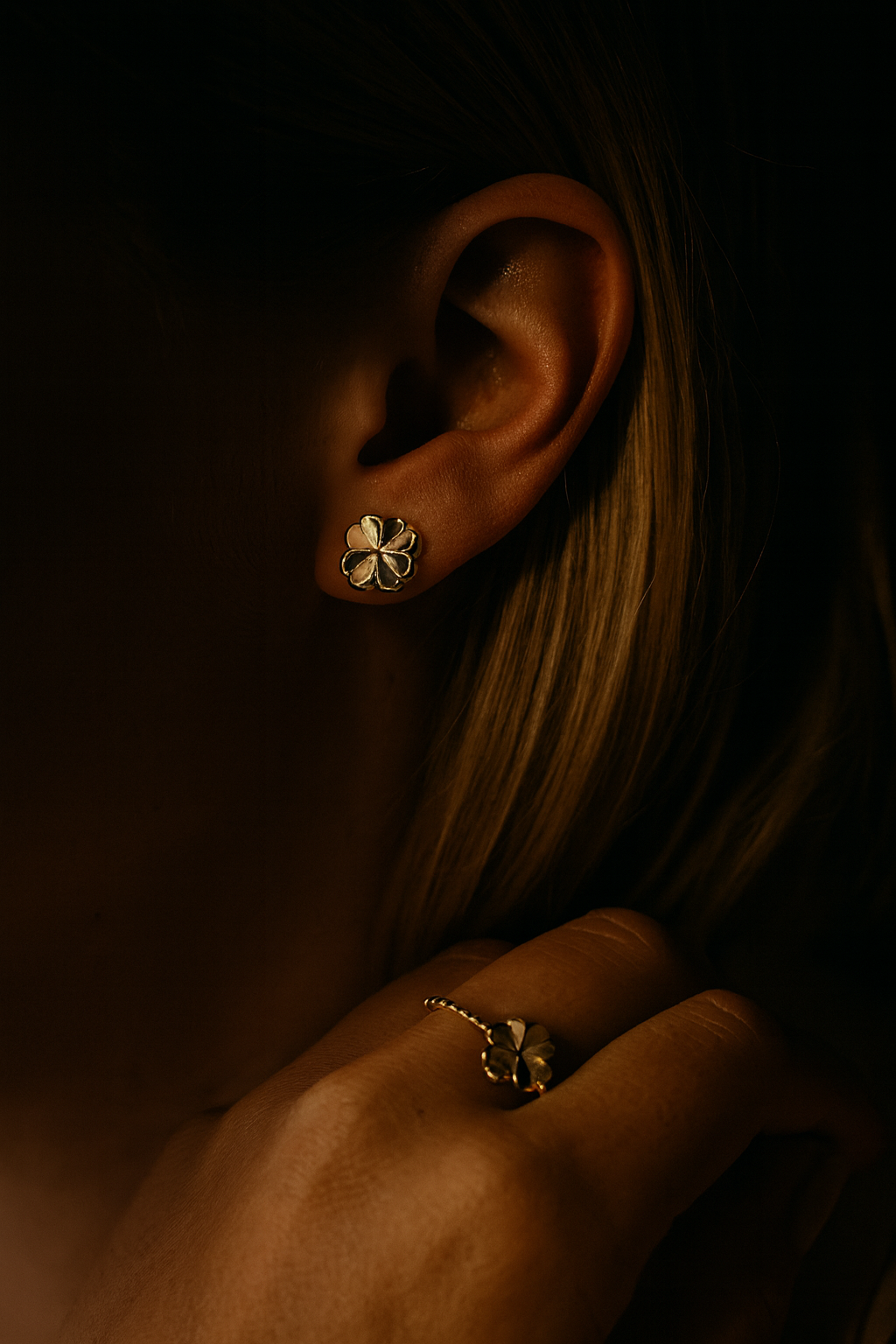 Delikatny motyw czterolistnej koniczyny dodaje im lekkości i uroku, sprawiając, że stają się subtelnym talizmanem pełnym pozytywnej energii.